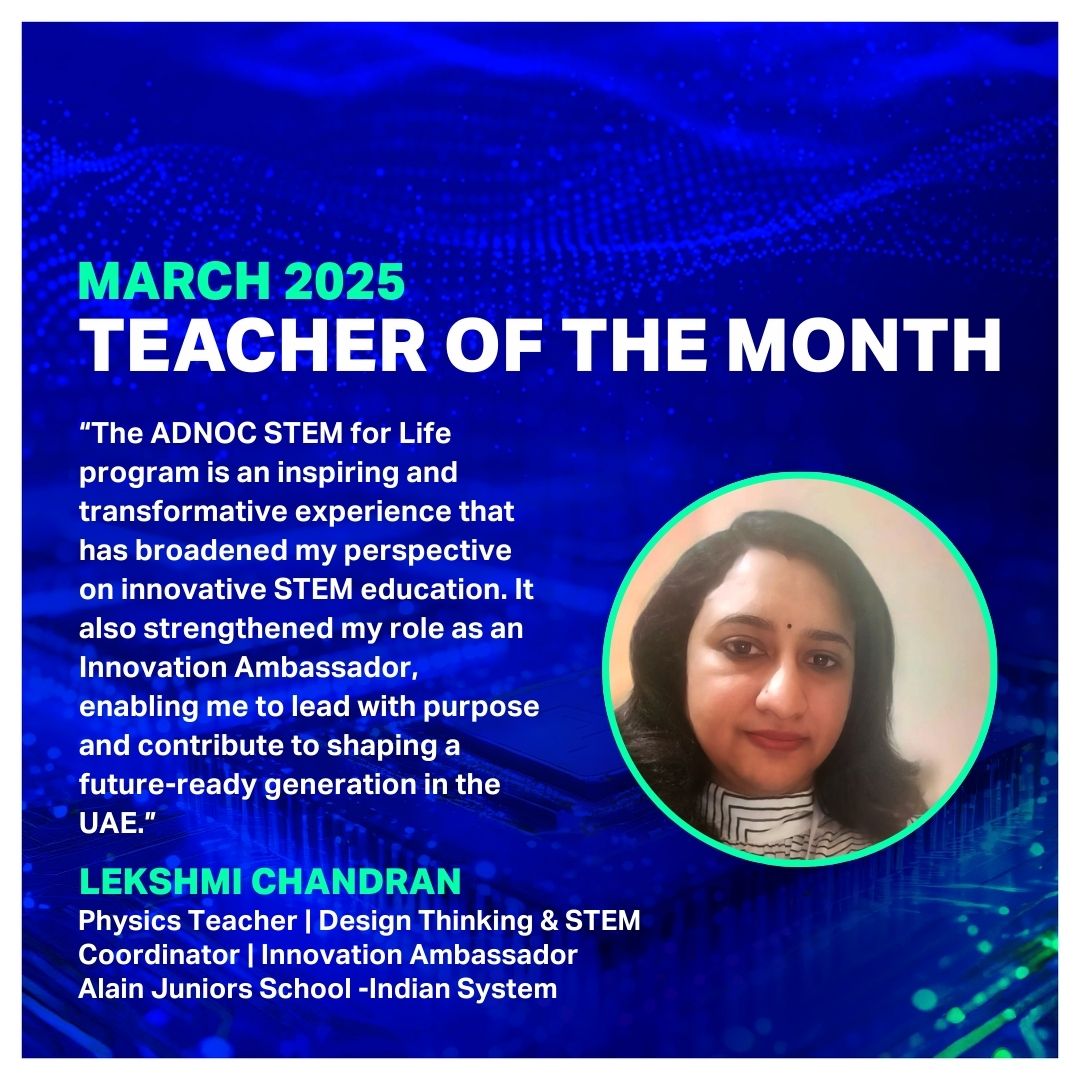 We’re excited to announce Lekshmi Chandran from Al Ain Juniors School Indian System as our March Teacher of the Month!
